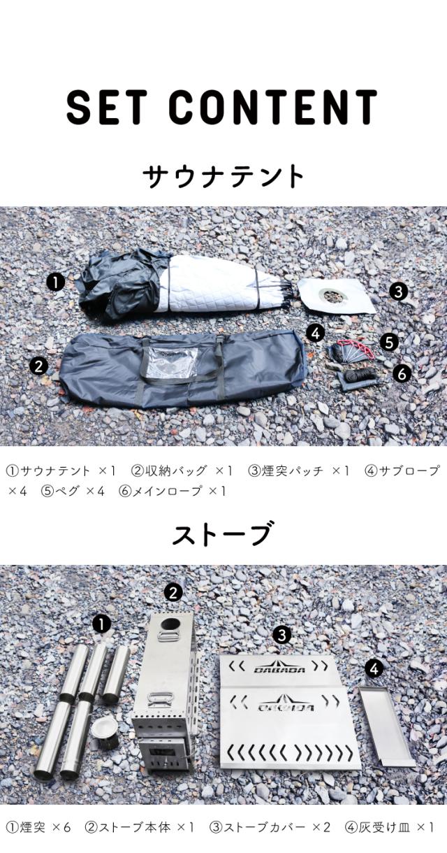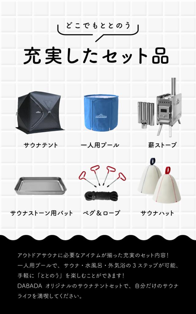 セット内容:サウナテント/サウナストーブ/サウナプール/サウナハット