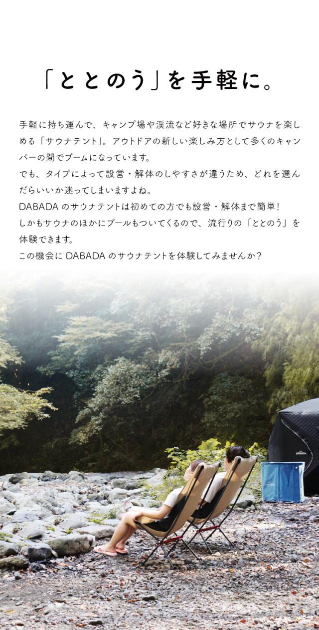 いつでも、どこでもサウナを楽しむ本格サウナテントがDABADAから登場。