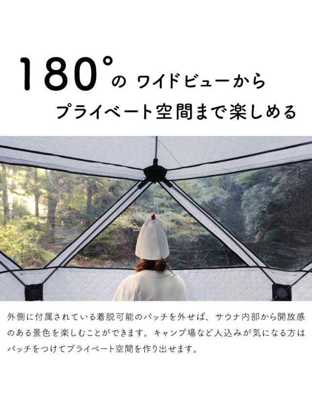 180°のパノラマ風景を満喫でき、キャンプやアウトドアにも持ち運びができるサウナテントです。