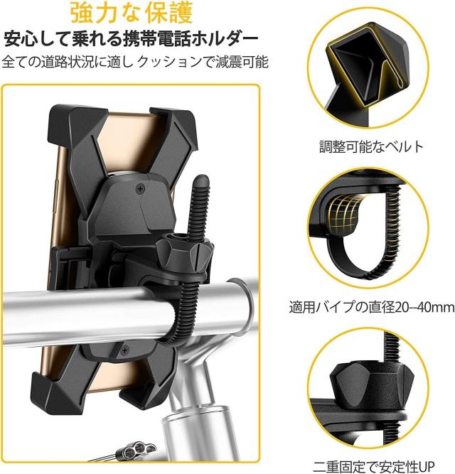 自転車 スマホ ホルダー 防振 脱落防止 バイク スマホ ホルダー GPSナビ 携帯 固定用 防水 スマホホルダー バイク装着簡単 360度回転 角度調整