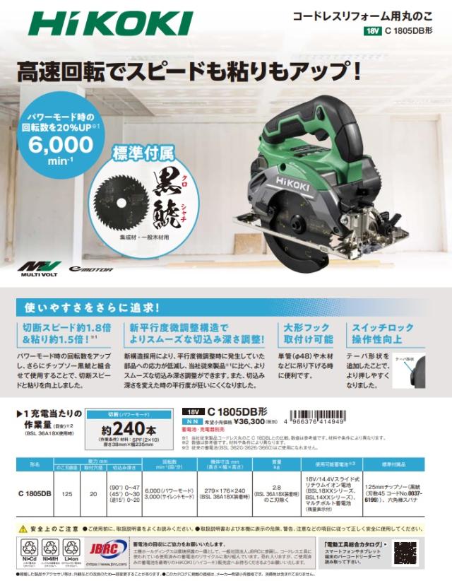 HiKOKI コードレスリフォーム用丸のこ C1805DB(NN) 本体+黒鯱チップソー付 18V対応 ハイコーキ 日立