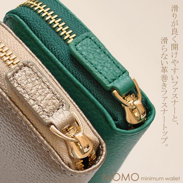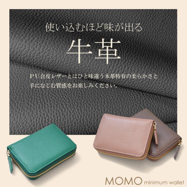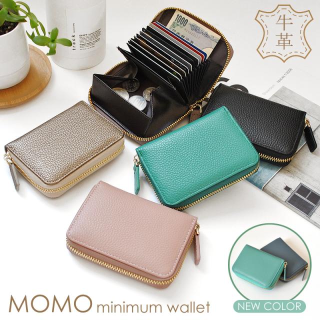 ミニ財布 レディース ラウンドファスナー 牛革 蛇腹 大容量 ラウンドファスナー BOX小銭入れ MOMO モモ【AN-3174】mlb ブランド 人気
