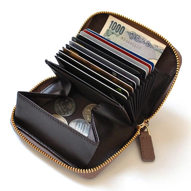 180°開く人気の蛇腹カードポケットのミニ財布(コンパクト財布)。 蛇腹で仕切られた内面仕様で、中身がとても見やすく、