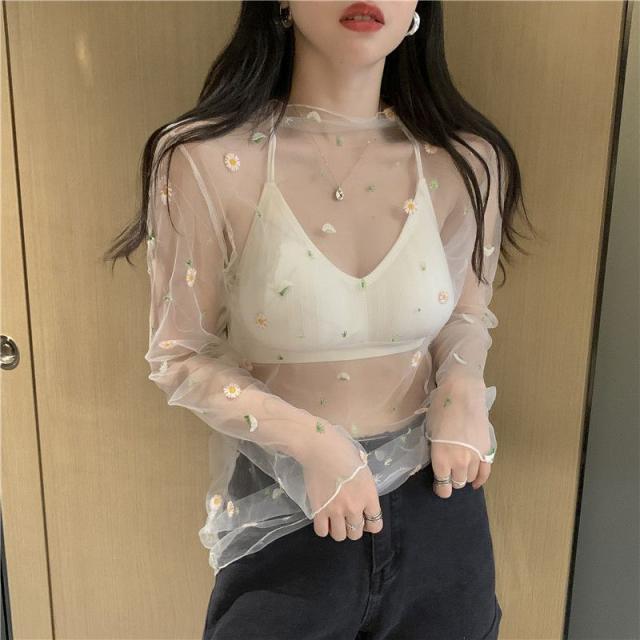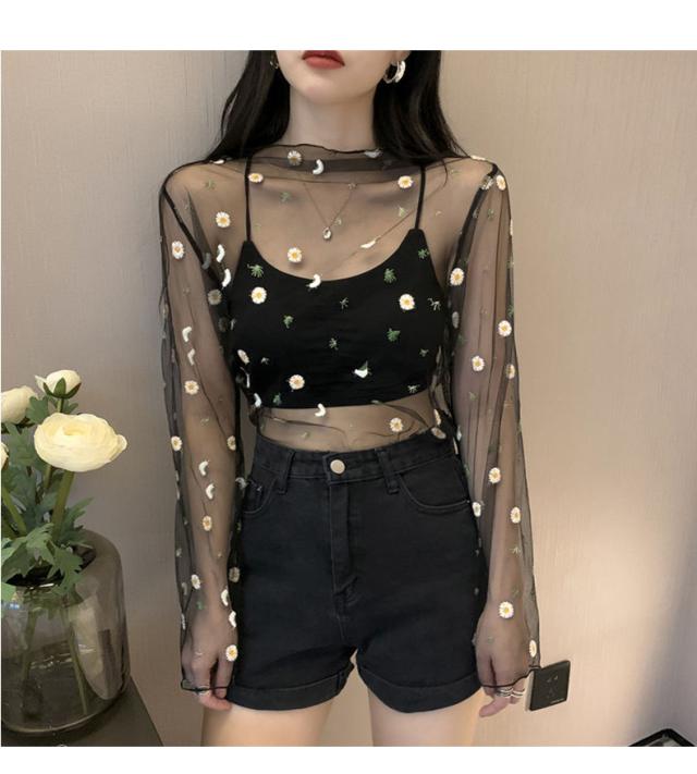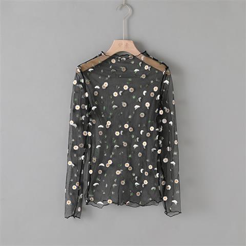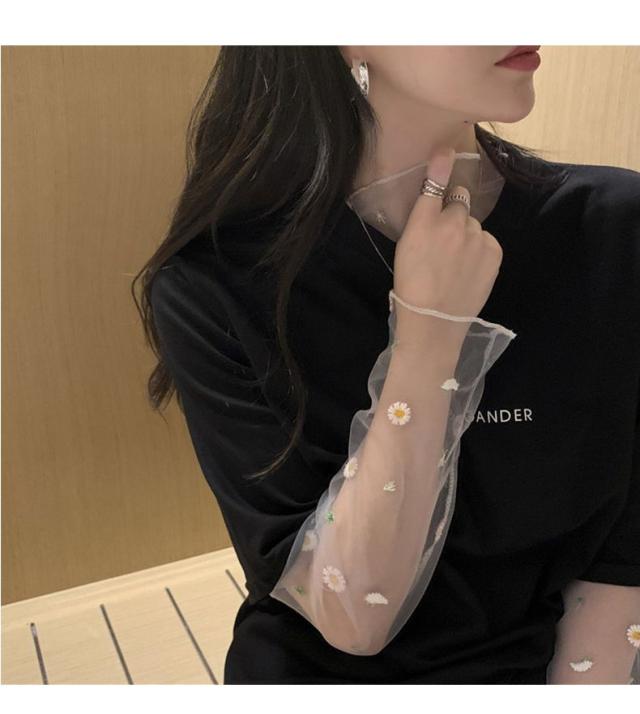 トップス シアー レースインナー レディース レイヤード 重ね着 モックネック 長袖 大人 ヒナギク柄 雛菊柄 きれいめ デイリー レース 透け感 ハイネック 20代 30代 40代