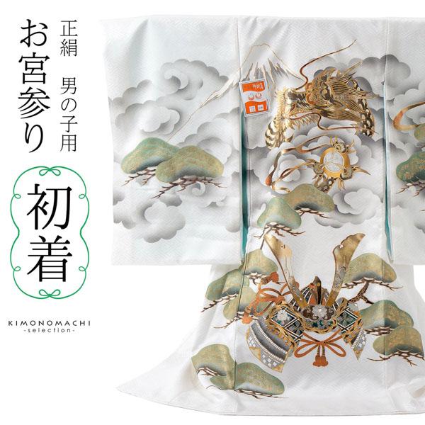男の子のお宮参り産着 祝い着「白地、龍に宝珠」正絹 熨斗目 のしめ 一つ身 一ツ身 初着 お初着 御祝着 着物 七五三 お宮詣り 祈願 お祈り 子供 キッズ 赤ちゃん ベビー 男児【メール便不可】