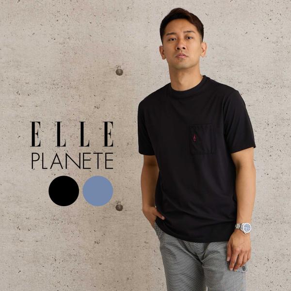 Tシャツ メンズ 半袖 ポンチ ブランド ELLE PLANETE エルプラネット接触冷感 吸汗速乾 ストレッチ 夏 オフィスカジュアル ビジネス 胸ポケット シンプル 刺繍 トリコロール 30代 40代 50代 60代 70代 大人カジュアル M/L/LL グレー/灰 ブラック/黒 ギフト 父の日