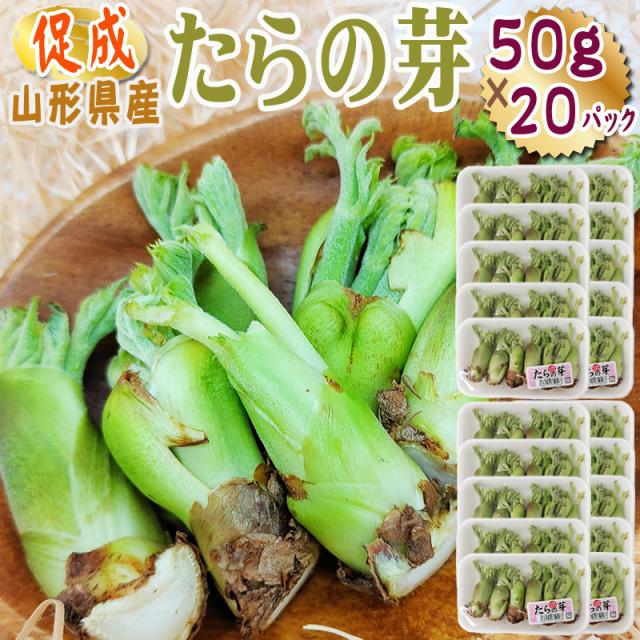 山形県産 促成 山菜 たらの芽 1kg (50g×20パック) 送料無料 クール便 [促成たらの芽 50g×20]