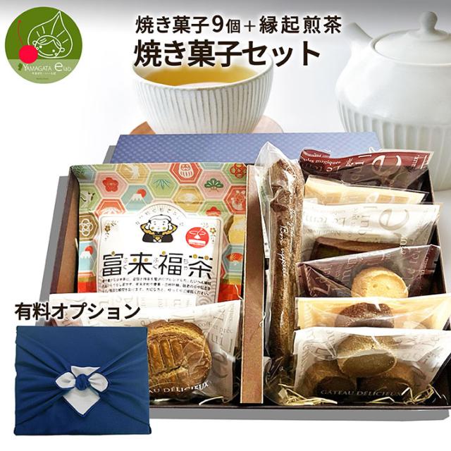 \ただ今、お届け中!/ スイーツ&縁起煎茶セット 焼き菓子9個入 ギフト 焼菓子 個包装 フランス菓子 抹茶 ほうじ茶 チョコ 煎茶 緑茶 金箔入り 本格 お菓子 送料無料 セット 詰め合わせ