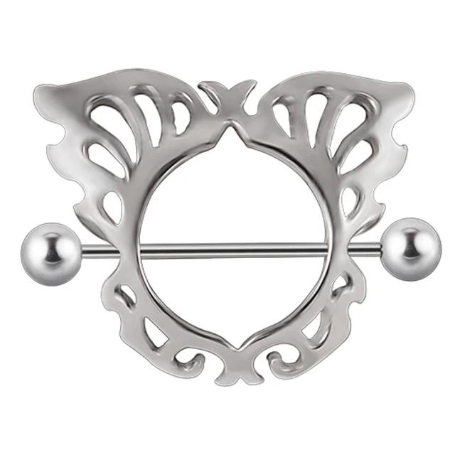 チョウチョウをモチーフにしたシールドの真ん中に丸く穴が開いているシールドなので、乳首ニップルピアスに最適のボディーピアス。シールド部分は真鍮にシルバーメッキ、バーベル部分はサージカルステンレス316L製。バーベルはシャフトにネジ山、ボールにネジ穴のあるアウトターナル(外ネジ)タイプのバーベルです。ストレートバーベルは取り外しできるので、細いゲージのバーベルや素材やカラーの違うバーベルに組換えてカスタムしてもお洒落なボディピアスです。男性からも女性からも人気が高く、メンズでもレディースでも使えるのでペアルックやプレゼント、友人や友達、彼氏や彼女でおそろいコーデも!