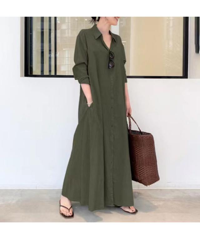 シャツワンピ ワンピース レディース 長袖 マキシ 春夏秋 スキッパー シャツ ワイド 羽織り S~6L 大きいサイズ
