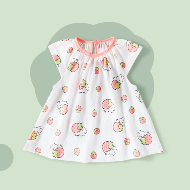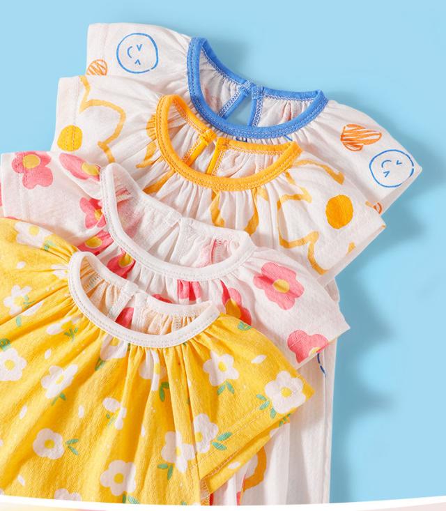 子供服 ワンピース 女の子 ベビー 夏 半袖 薄手 ゆったり 綿 コットン 通気 柔らかい 花柄 かわいい