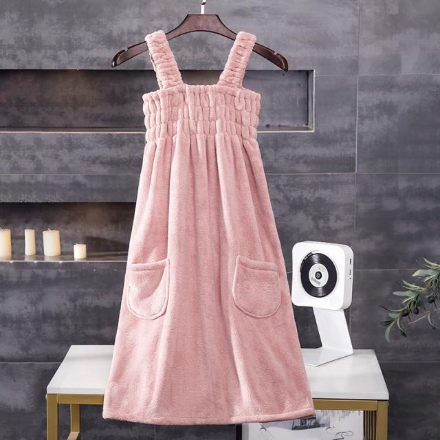 着るバスタオル 大きいサイズ レディース 海 プール ジム 旅行 可愛い 無地 ポケット付 マイクロファイバー 吸水 ピンク