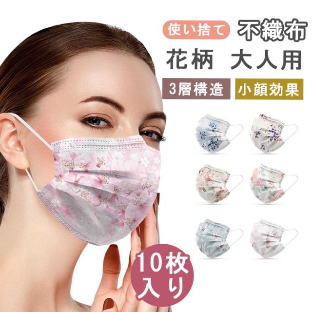マスク 使い捨てマスク 大人用 10枚 オシャレ 花柄 不織布 3層 通勤 通学 ウイルス対策 プレゼント イベント 成人 マスク