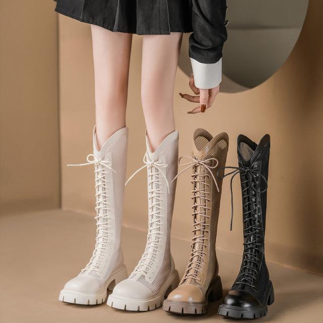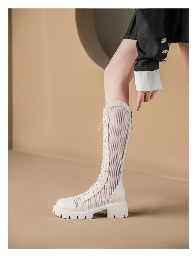 ブーツサンダル レディース ロングブーツ 編み上げ 厚底 メッシュ ブーツ 歩きやすい サマーブーツ 編み シースルー 透け感 美脚