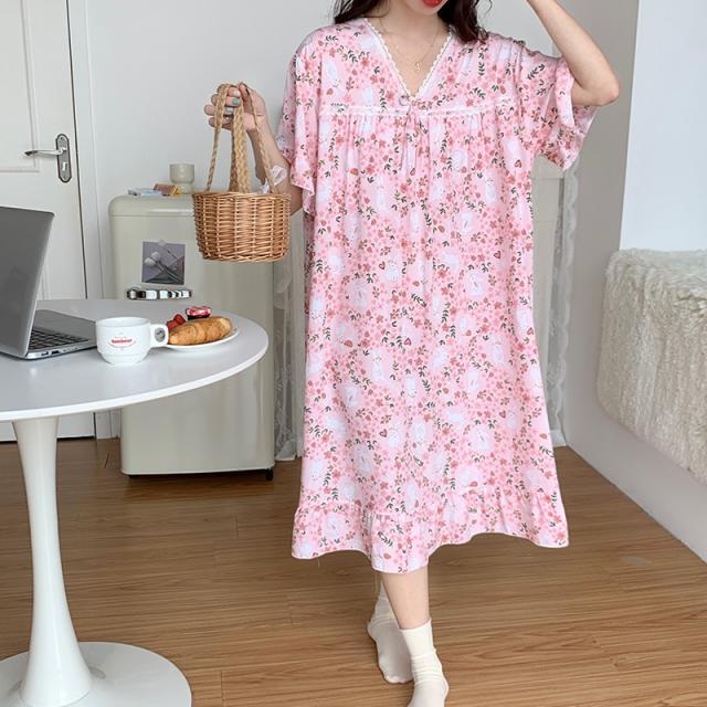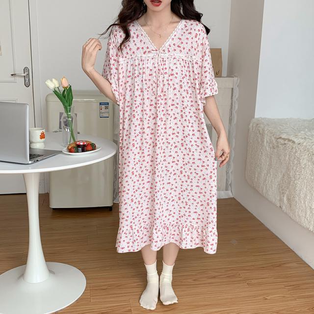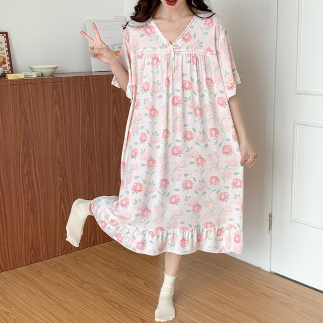 ネグリジェ パジャマ ワンピース レディース 半袖 マキシワンピース 夏 ロング丈 ルームウェア Vネック 大人 部屋着 花柄 可愛い おしゃれ