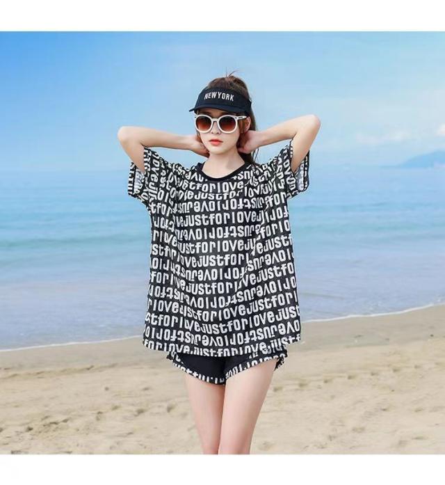 送料無料 水着 中学生 水着セット フィットネス水着 体型カバー スポーティー 露出控え 3点セット セパレート タンキニ タンク ショートパンツ 学生 高校生 少女 女の子 小胸にも