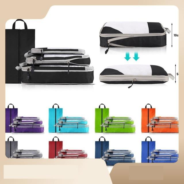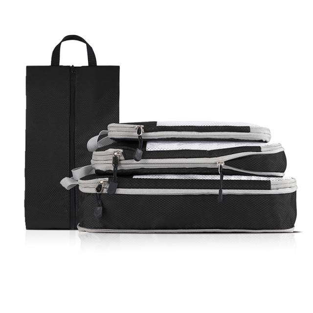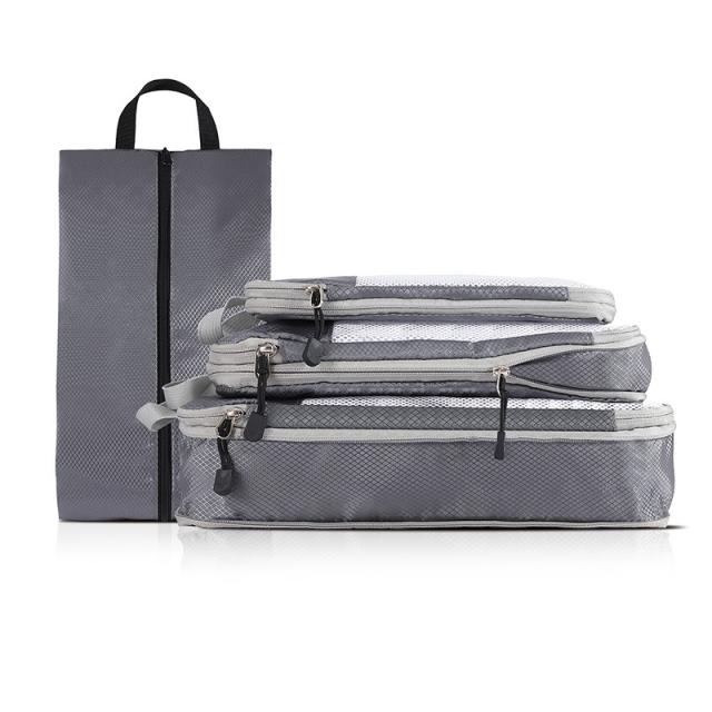 4点セット トラベルポーチ 圧縮 セット シューズケース付き 旅行用 圧縮袋 圧縮バッグ 旅行ポーチ メッシュ 大容量 撥水 おしゃれ