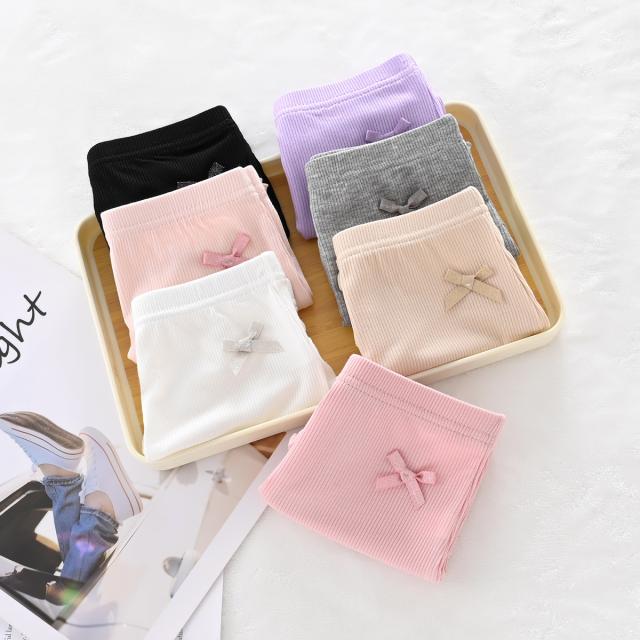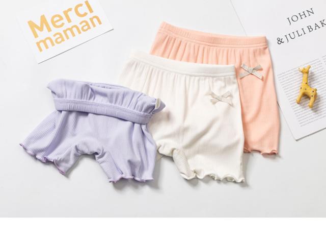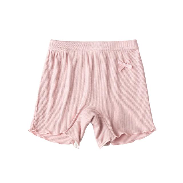 キッズ オーバーパンツ 女の子 無地 リボン付き インナーパンツ アンダーパンツ ガールズ 下着 3分丈 女児 ショートパンツ 短パン ストレッチ性