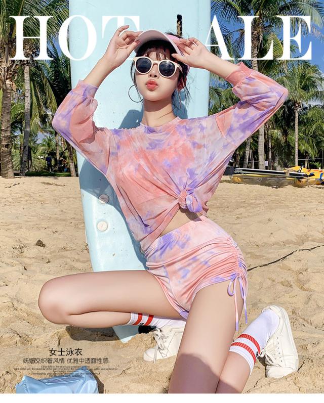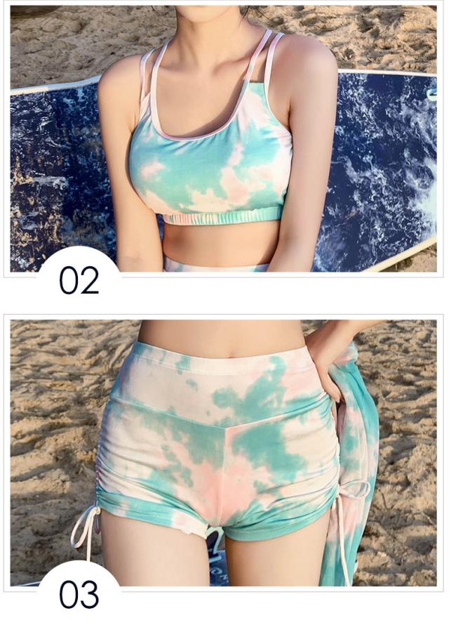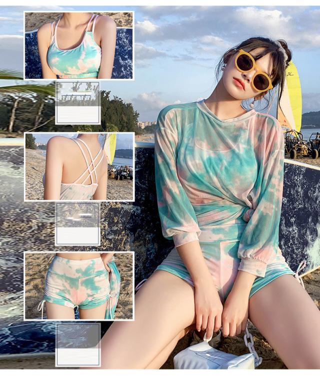 3点セット 水着 セット 中学生 高校生 ショートパンツ タンキニ パッド付き 長袖Tシャツ セパレート 体型カバー 日焼け防止 おしゃれ