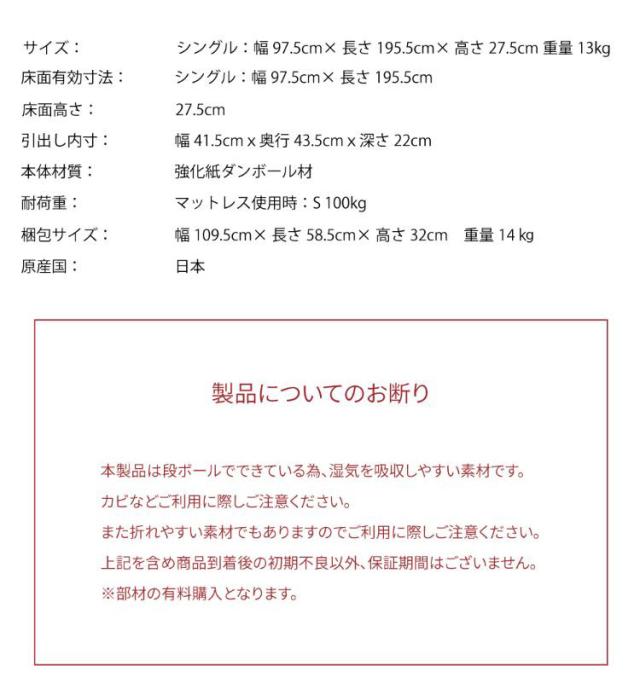 ベッドフレーム シングル ダンボールベッド ベットフレーム ベッド ベット 寝具 インテリア 家具 6-001 S シングルサイズ Sサイズ(代引不可)【送料無料】