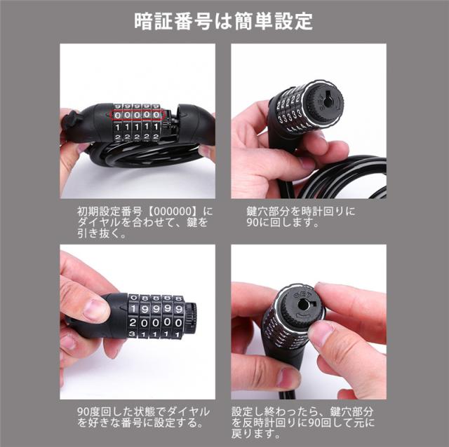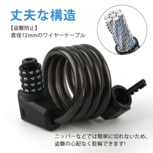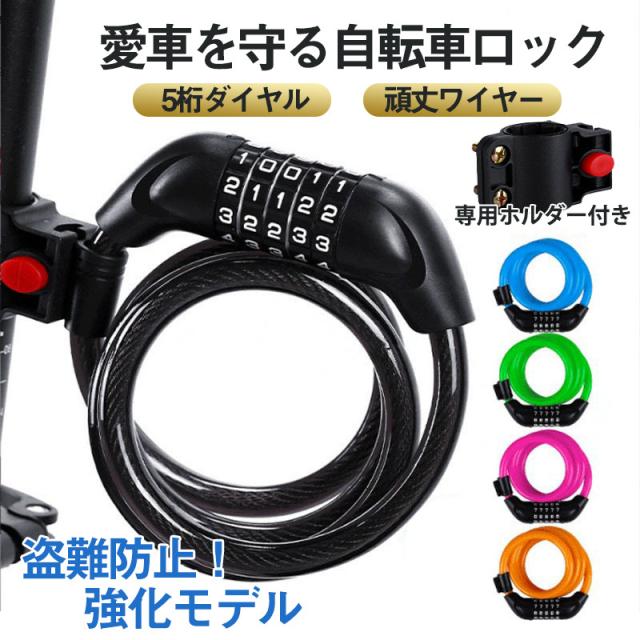 ワイヤーロック 自転車ロック 5桁 暗証番号 盗難防止 セキュリティ ダイヤル式 ブラケット付き 鍵 自転車 防犯 丈夫 超軽量