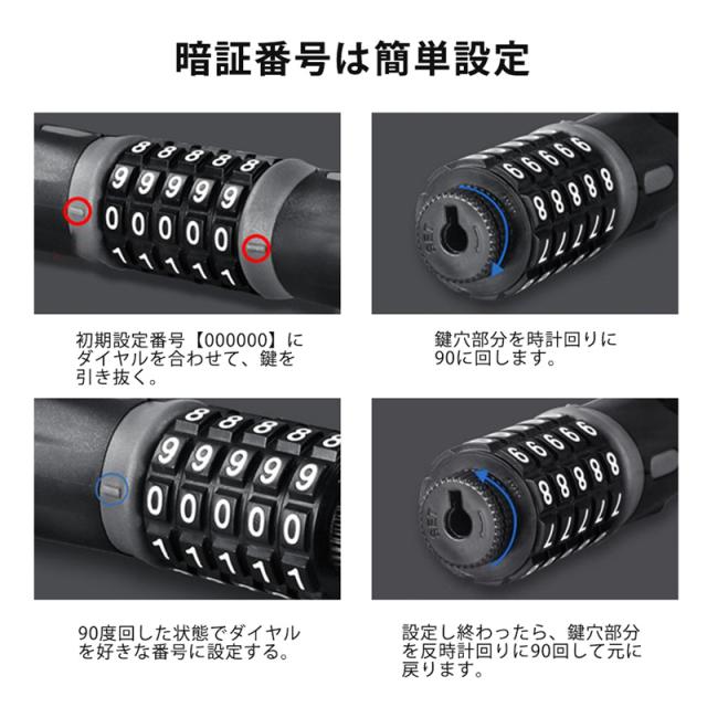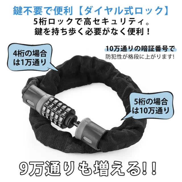 ワイヤーロック 自転車ロック 5桁 暗証番号 盗難防止 セキュリティ ダイヤル式 錆にくい 鍵 自転車 防犯 丈夫 超軽量 コンパ