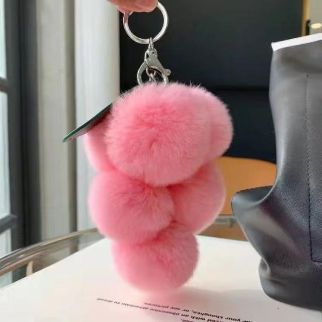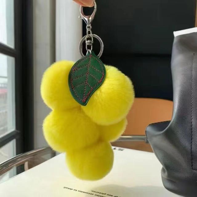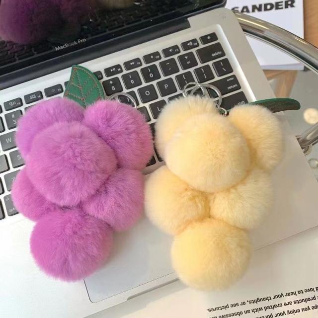 バッグチャーム キーホルダー ぶどう バッグアクセサリー ふわふわ もこもこ おしゃれ 可愛いキーホルダー ギフト プレゼント かーストラップ