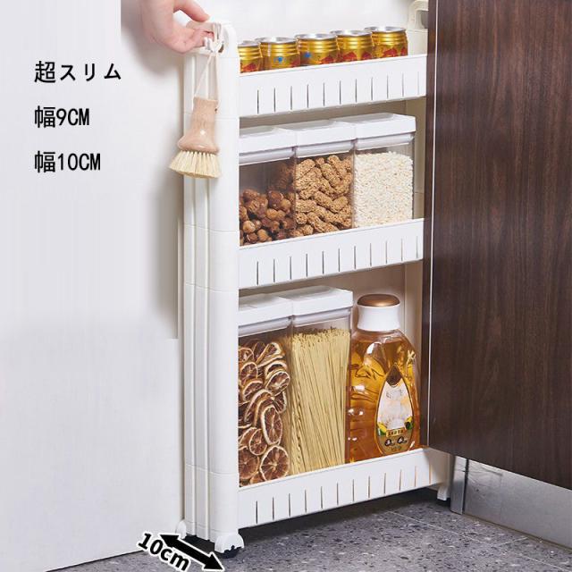 キッチンワゴン スリム 幅9cm 10cm キャスター付き スリム 隙間収納 スリムトローリー スリム収納 サイドワゴン 洗面所 3段 2段 冷蔵庫横