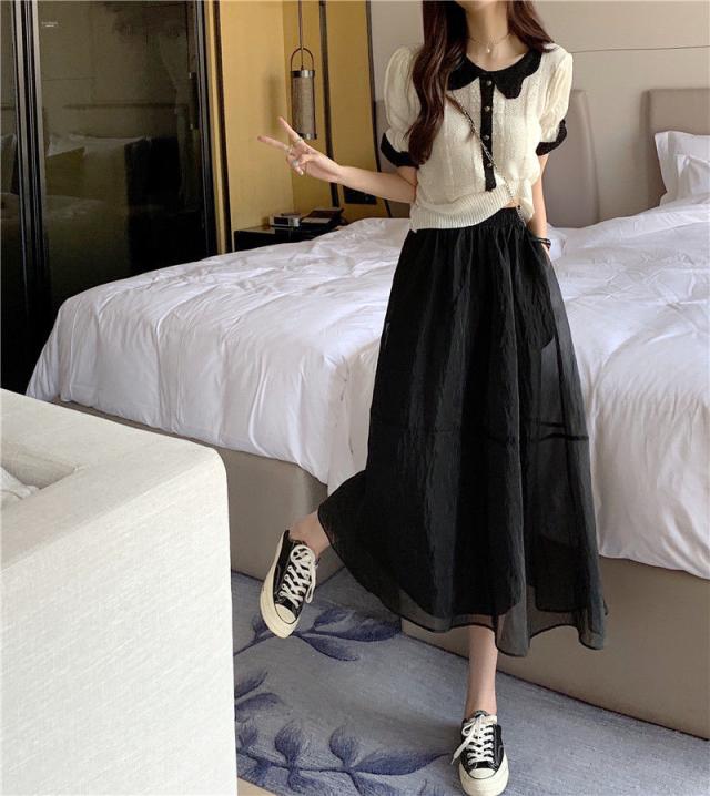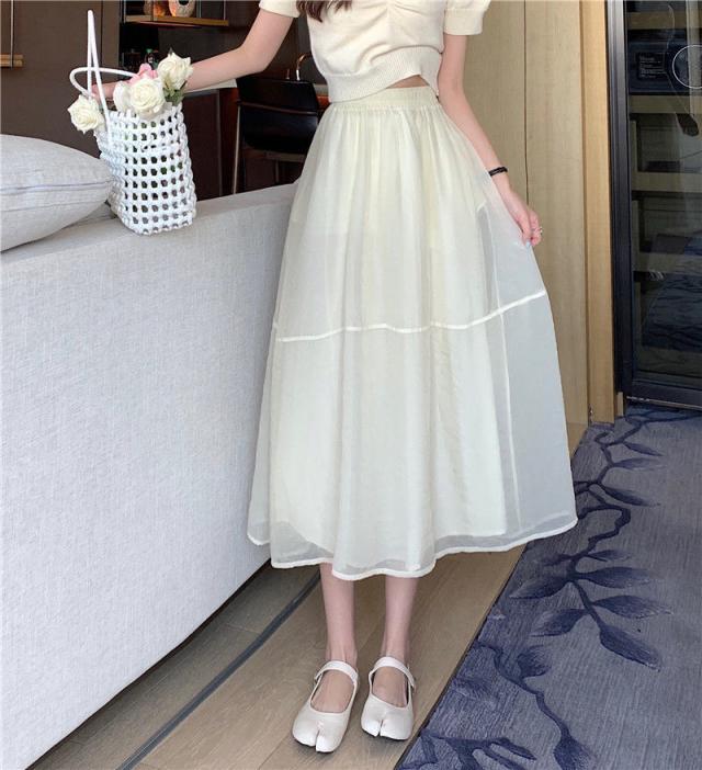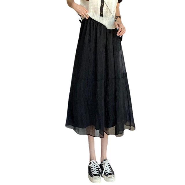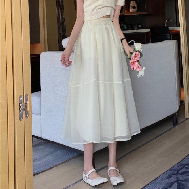 チュールスカート ロング スカート レディース フレアスカート ボトムス マキシ丈 ペチコート付き 裏地付き スカート Aライン 夏 秋 ダブルチュール