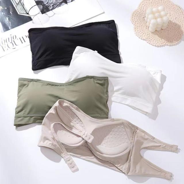 ダブルホックストラップレスブラ ずれない ノンワイヤー チューブトップ 紐なしブラ ブラ ブラジャー 垂れ防止 滑り止め
