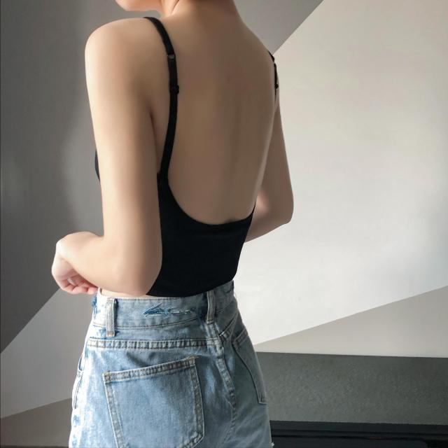 背中見せブラ ブラトップ ブラトップ カップ付き 背中 開き インナー ノンワイヤーブラ キャミソール 脇高 見せインナー レイヤード 重ね着