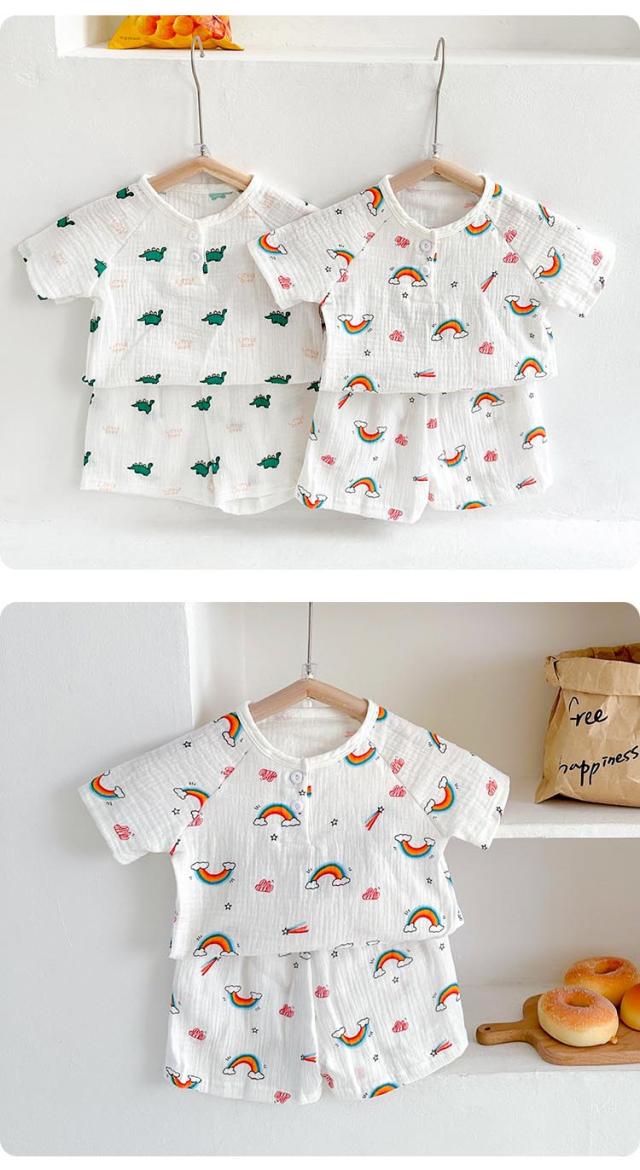 ベビー パジャマ 薄手 半袖 ショートパンツ ガーゼ キッズ 女の子 男の子 ルームウェア 上下セット 赤ちゃん 寝巻き 子供服 部屋着 可愛い 吸汗速乾