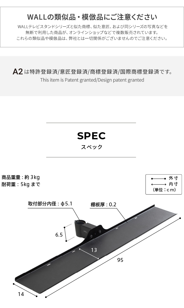 WALL(ウォール) インテリアテレビスタンドA2ハイ・ラージタイプ対応 サウンドバー棚板 Mサイズ 幅95cm 2色対応 専用棚板 付属品 テレビ台 テレビスタンド ホワイト ブラック