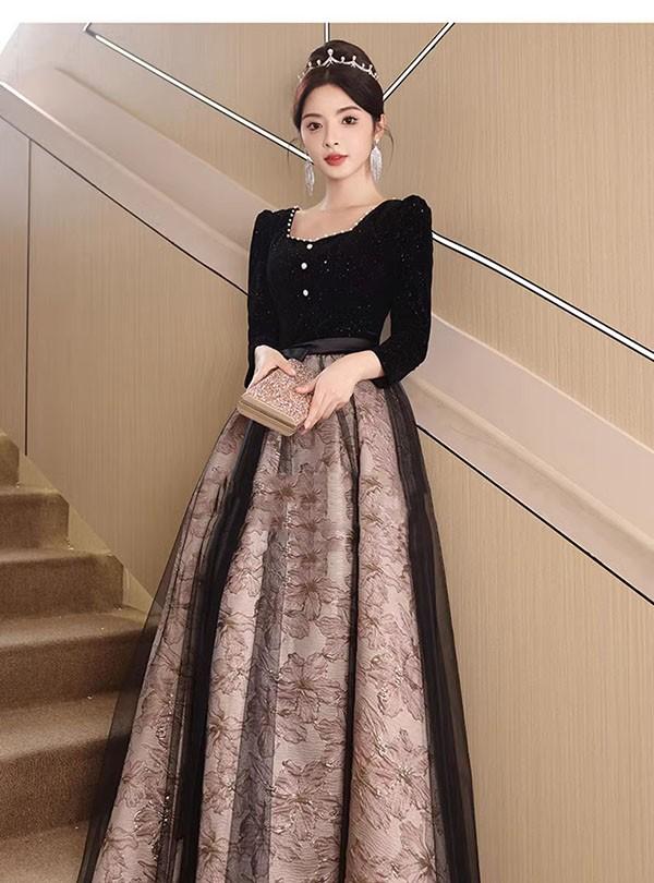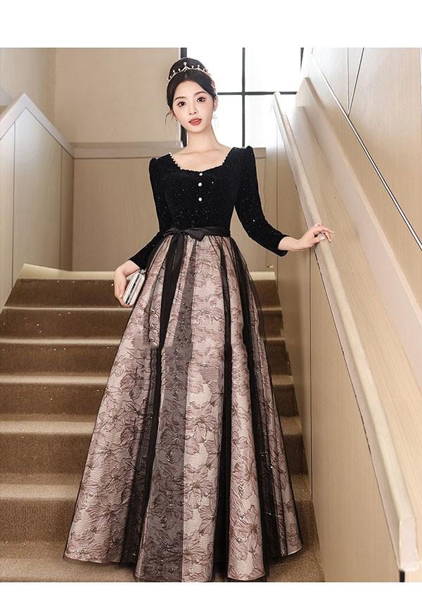 ドレス 大人 ピアノ 発表会 ロング丈 ぽっちゃり 大きいサイズ イブニングドレス 演奏会 ピアノ発表会 袖付き ワンピース Aライン ステージドレス 二次会 女子会 成人式 パーティードレス 大人可愛い bg151zezezr