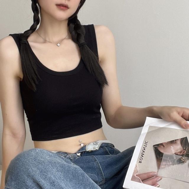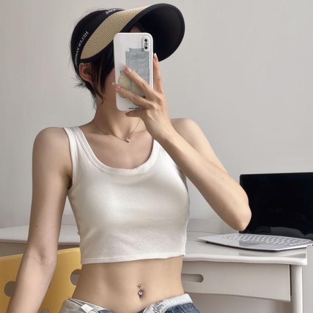 ハーフトップ 綿 カップ付き キャミソール ずれない インナー ブラキャミ ノースリーブ トップス スポーツブラ ヨガ 揺れない 肩紐広い