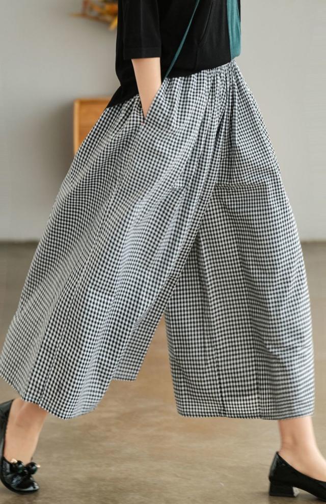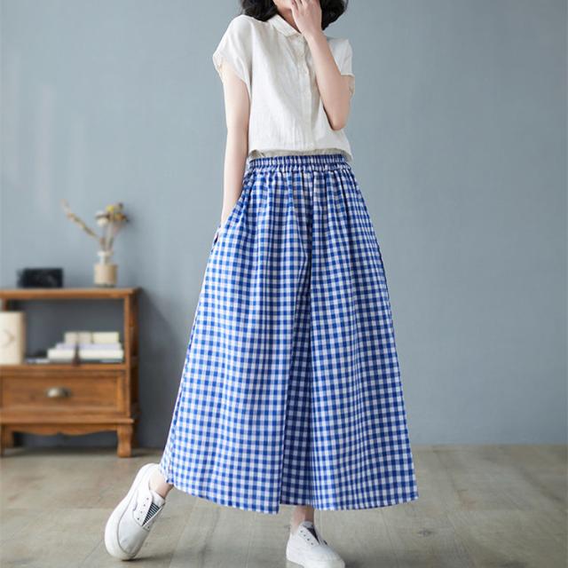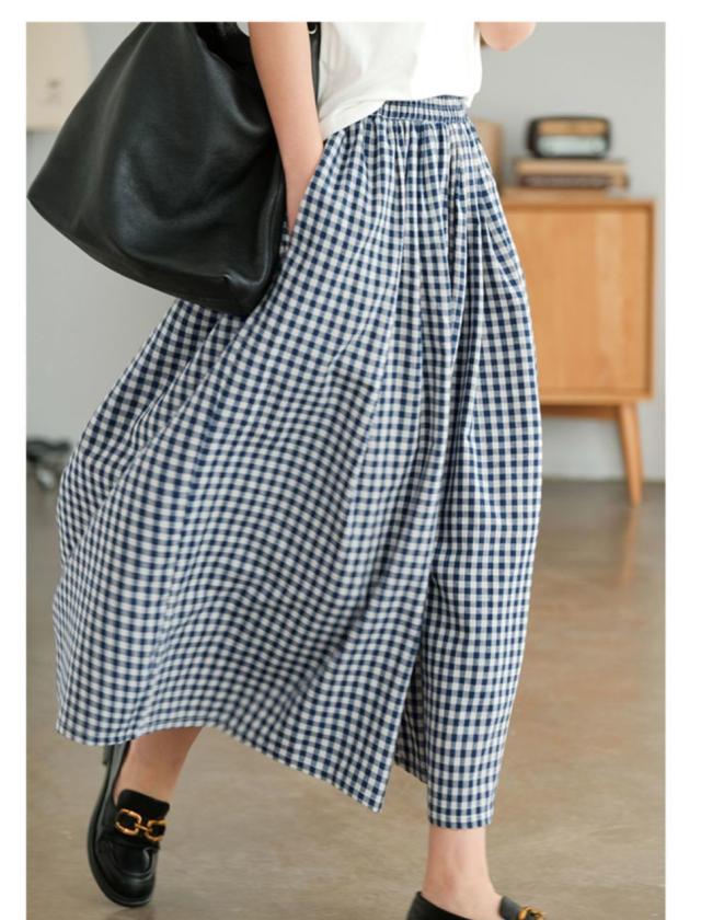 ワイドパンツ レディース スカーチョ 夏 チェック ガウチョパンツ ゆったり 九分丈 ボトムス おしゃれ 体型カバー 春 夏 かわいい