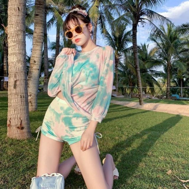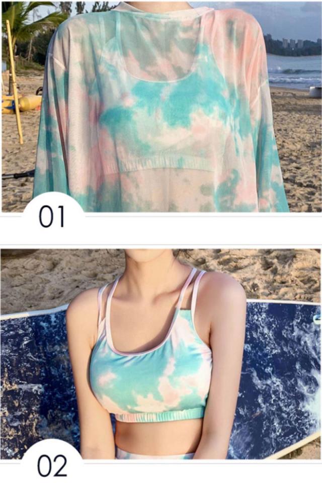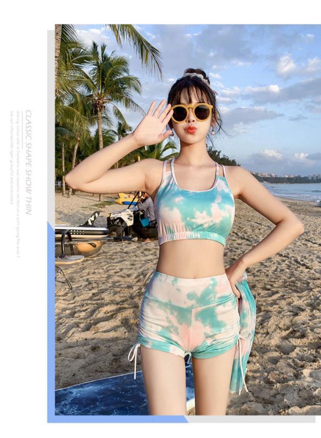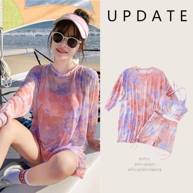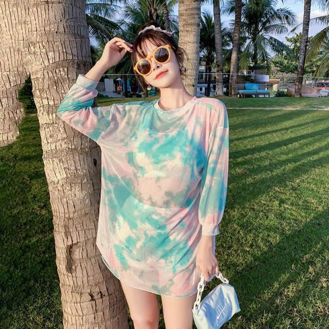 タイダイ染め タンキニ セット おしゃれ tシャツ付き 水着 ビキニ セパレート 3点セット スイムウェア かわいい 水遊び 海水浴