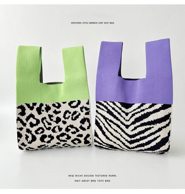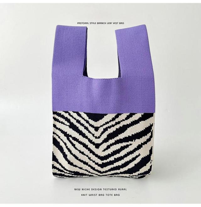ハンドバッグ ゼブラ柄 ニットバッグ ミニトート ミニトートバッグ 手提げバッグ かばん レディース 春 夏 秋 冬 ミニサイズ おしゃれ