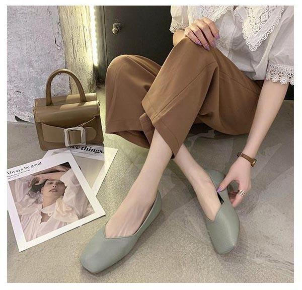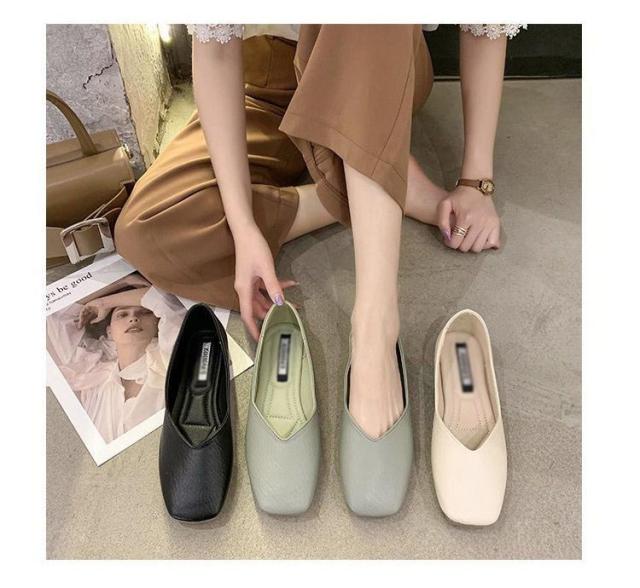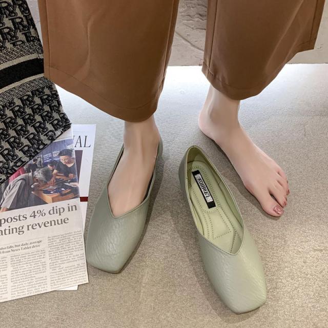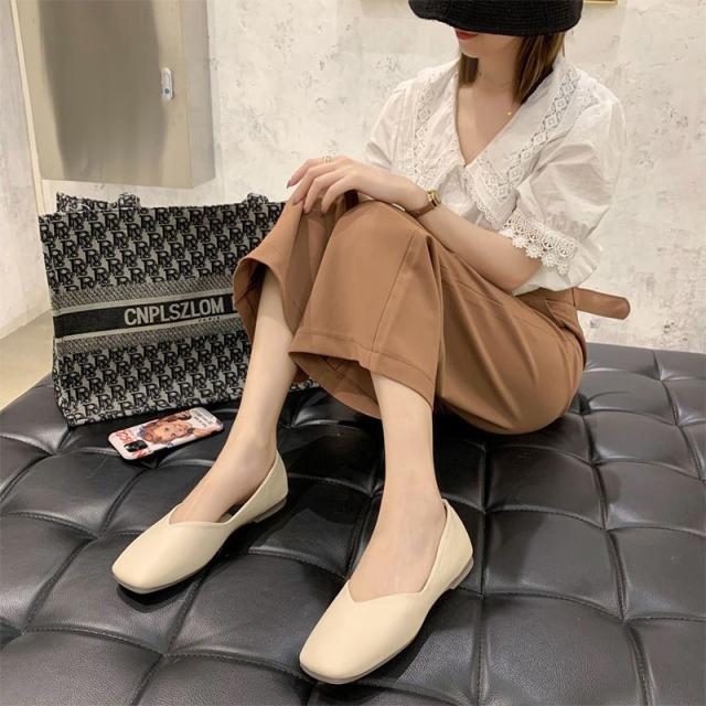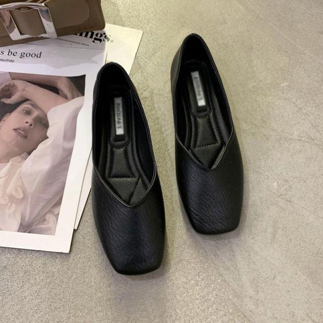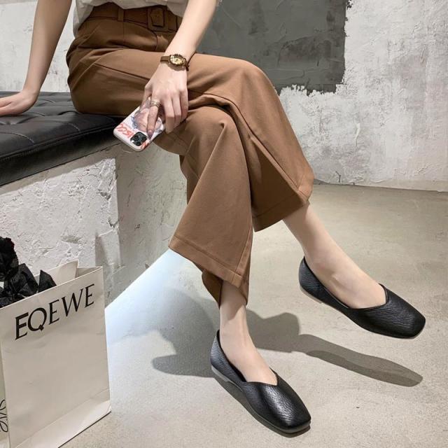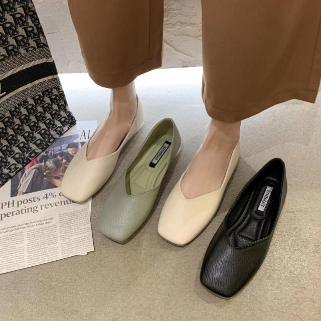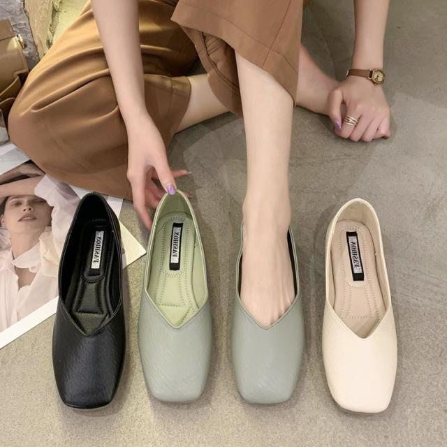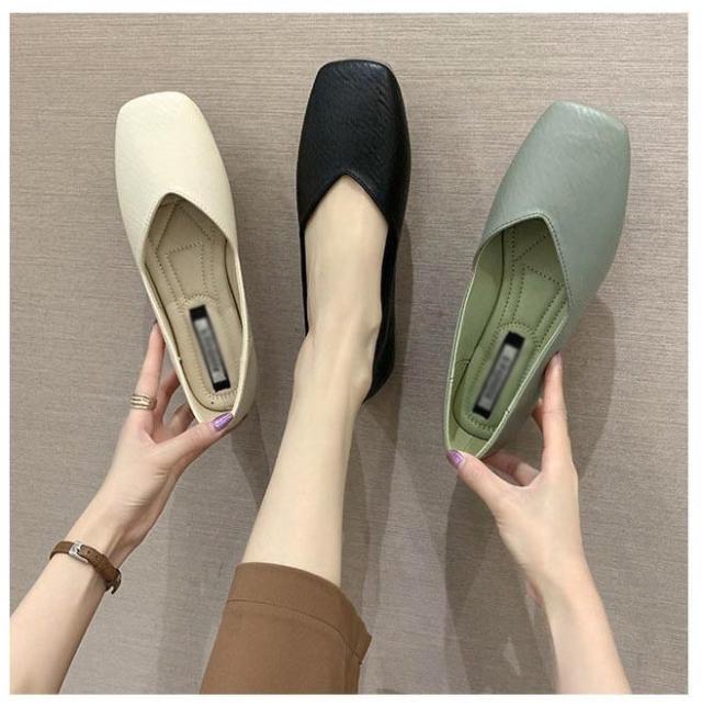 フラットシューズ レディース ローヒールパンプス 歩きやすい スクエアトゥ ぺたんこ ローヒール シンプル カジュアル 通勤 通学