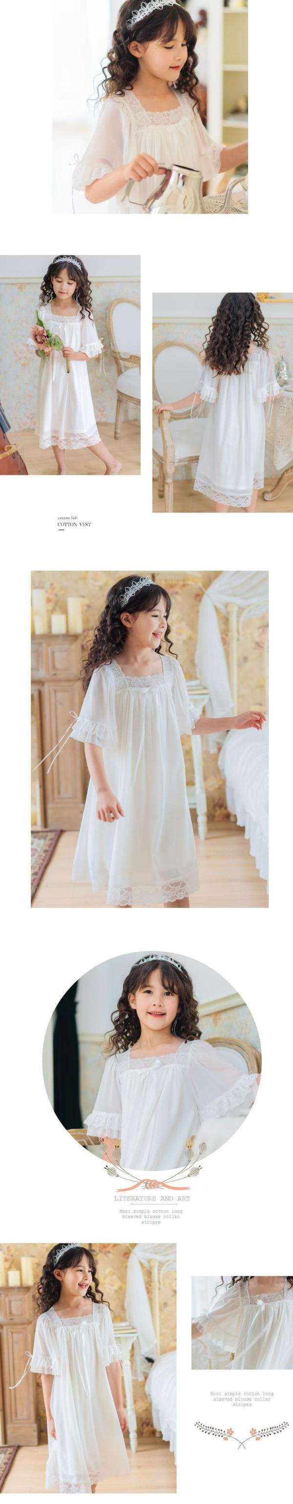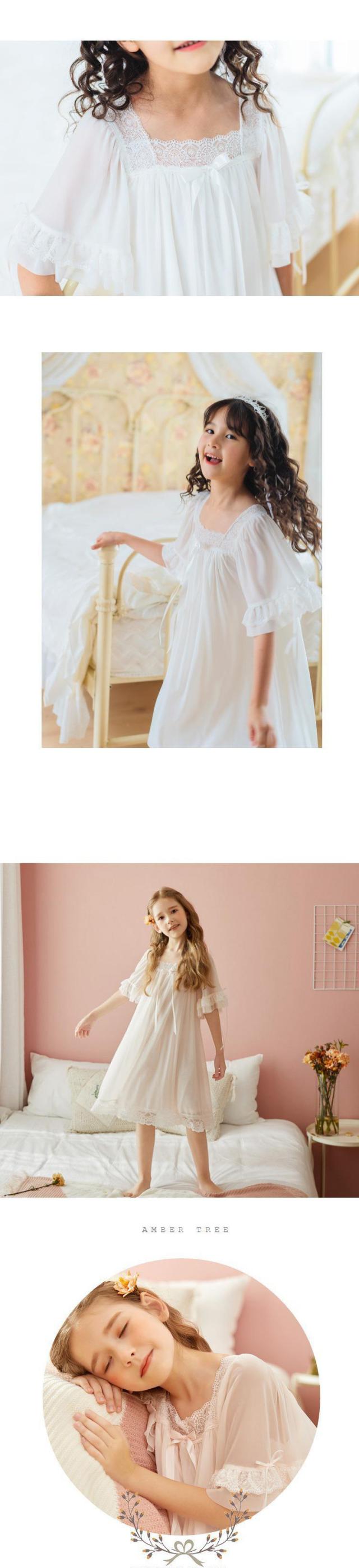 ネグリジェ パジャマ 女の子 半袖 プリンセス 寝巻き ワンピース レース ナイトドレス お姫様 ルームウェア キッズ ナイトウェア 部屋着 寝間着 可愛い