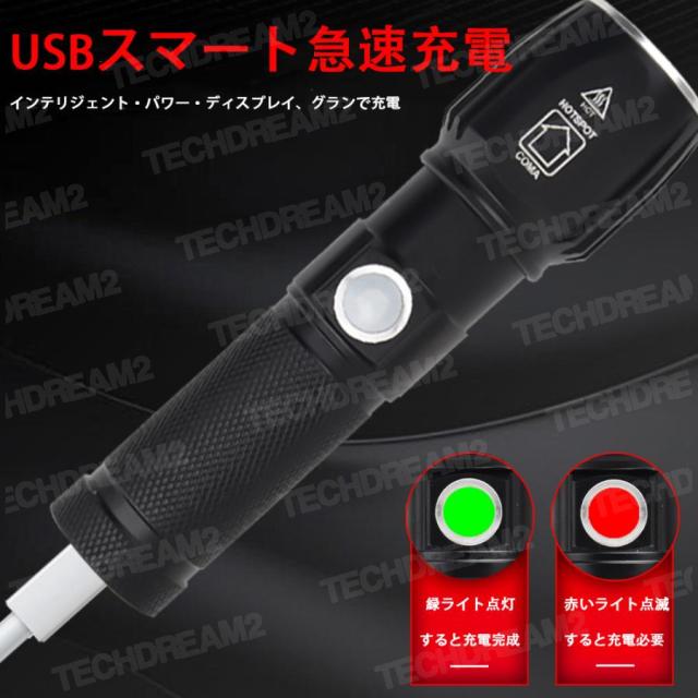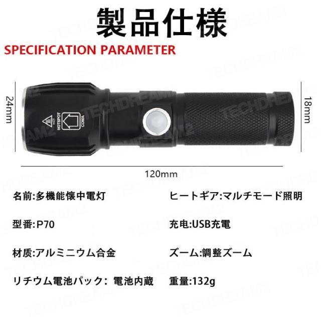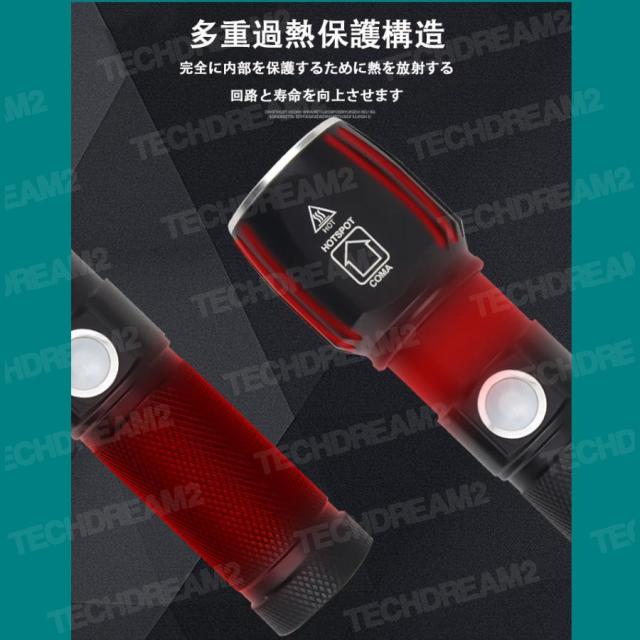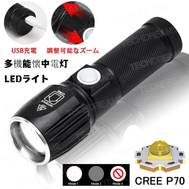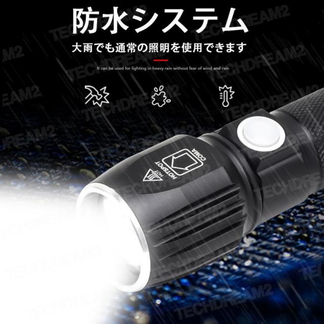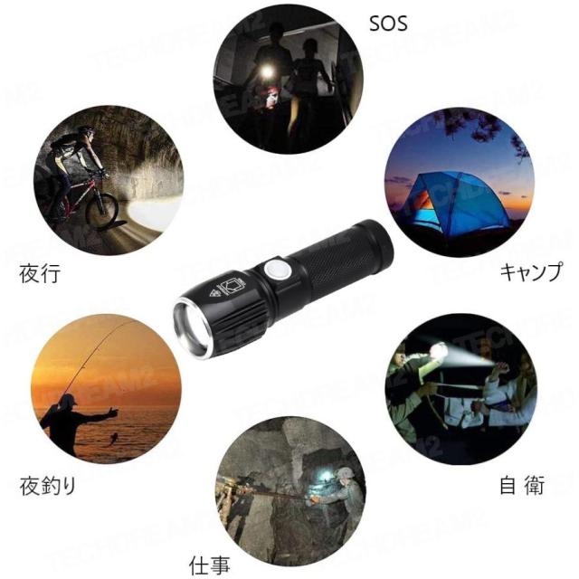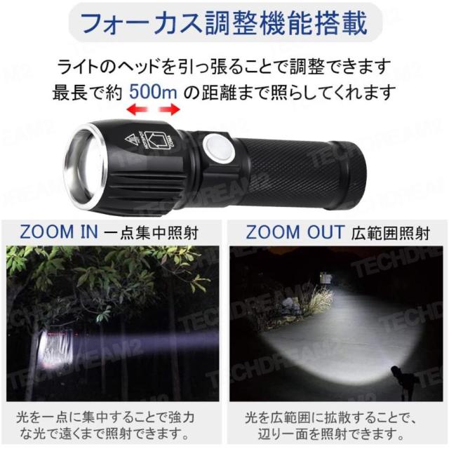 LEDライト 多機能懐中電灯 ハンディライト LED 充電式 超強力 ズーム 多モード 軍用 作業灯 停電 防水 防災対策 LEDライト ズーム機能