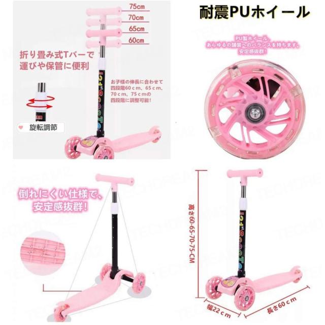 キックボード キックスクーター 持ち運び便利 光るホイール こども 3輪 子供用 キックスクーター 光るホイール
