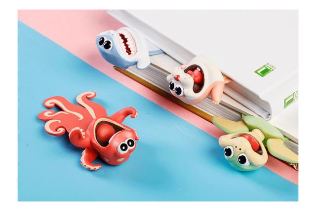 しおり 栞 アニマル 動物 ブックマーカー タコ アザラシ カメ サメかわいい 癒し 楽しい キッズ キュート おちゃめ 立体
