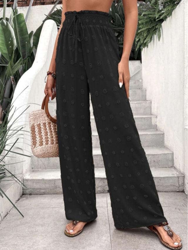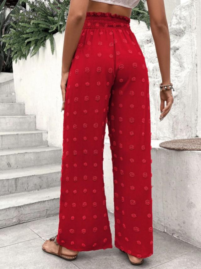 ワイドパンツ レディース ドット柄 パンツ ロング丈 パンツ 水玉 パンツ 大きいサイズ ゆったり 長ズボン ストレート ワイドパンツ カジュアル 大きいサイズ ウェストゴム 薄手