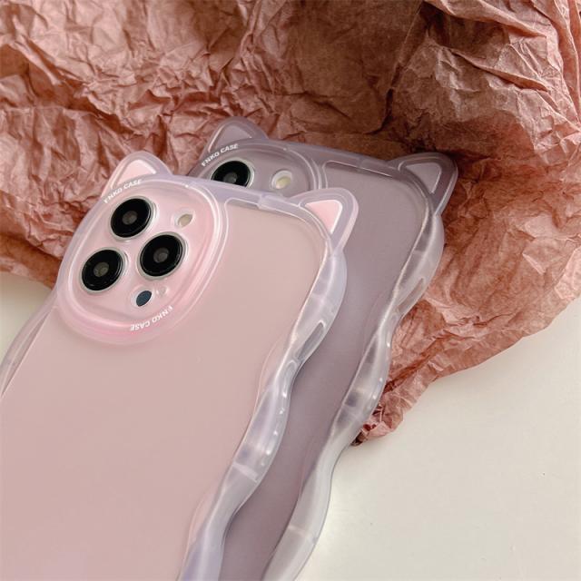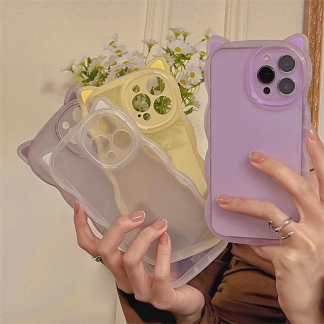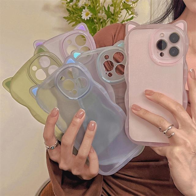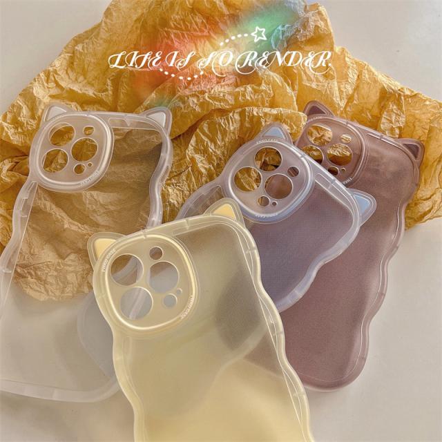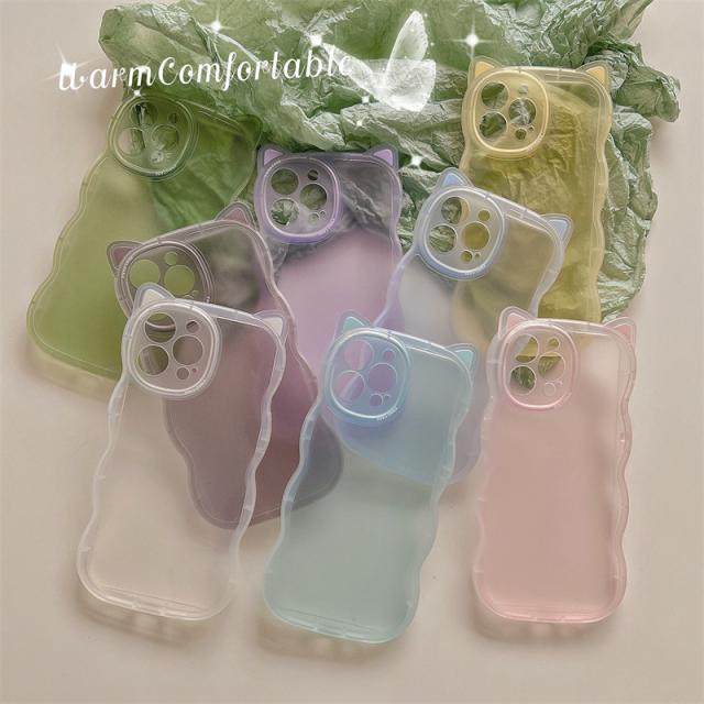 iPhone15 iPhone15pro iPhone15promax iPhone15plusスマホケース うねうね ネコ耳 配色 クリア iPhoneケース iPhone14 13 12 11 XR XS 透明 つや消し レディース 韓国 おしゃれ 可愛い