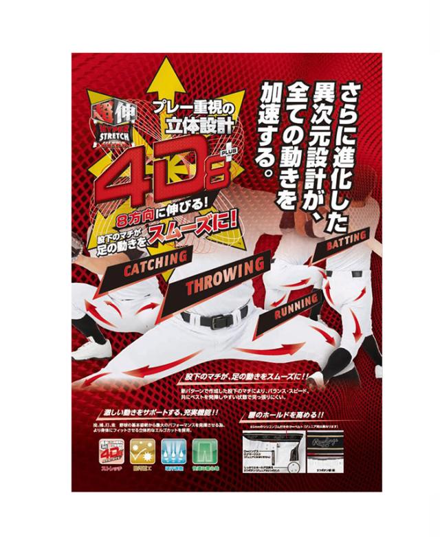 ローリングス メンズ レディース 4D+PLUS 8パンツ 野球ウェア ボトムス ホワイト 白 グレー シルバー 灰色 送料無料 Rawlings APP14S02NN