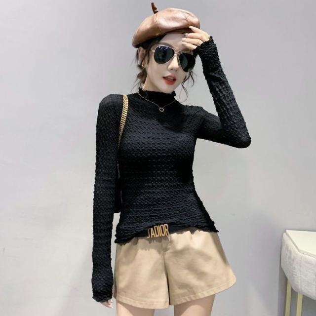 シースルー シアーインナー トップス ブラウス カットソー レディース 薄手 透け感 長袖 ハイネック インナー 重ね着 きれいめ