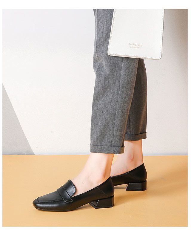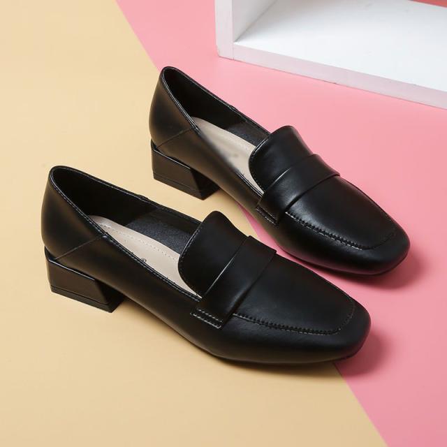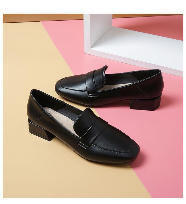 ローファー レディース 歩きやすい 大人 学生 女子 黒 ブラック 靴 ローファー 大きいサイズ ヒール チャンキーヒール スクエアトゥ