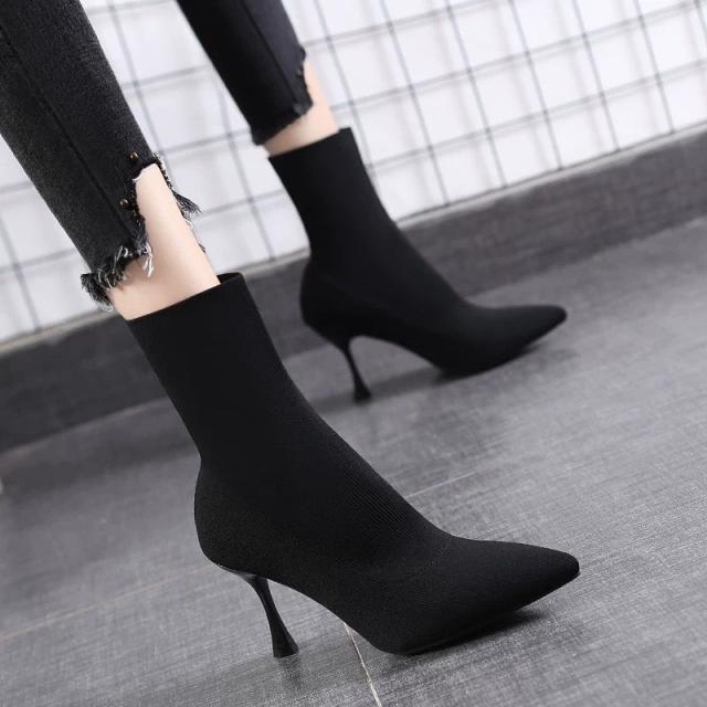 ショートブーツ ソックスブーツ レディース ポインテッドトゥ ショート丈 無地 ストレッチ 秋 ショート 大きいサイズ ピンヒール 靴 シューズ