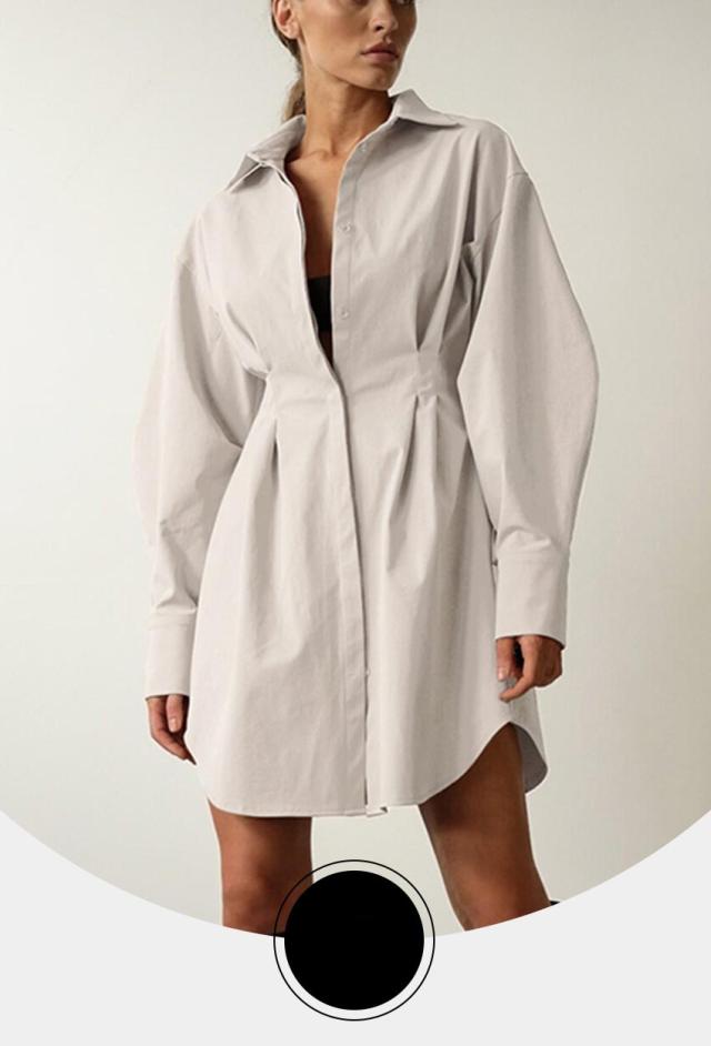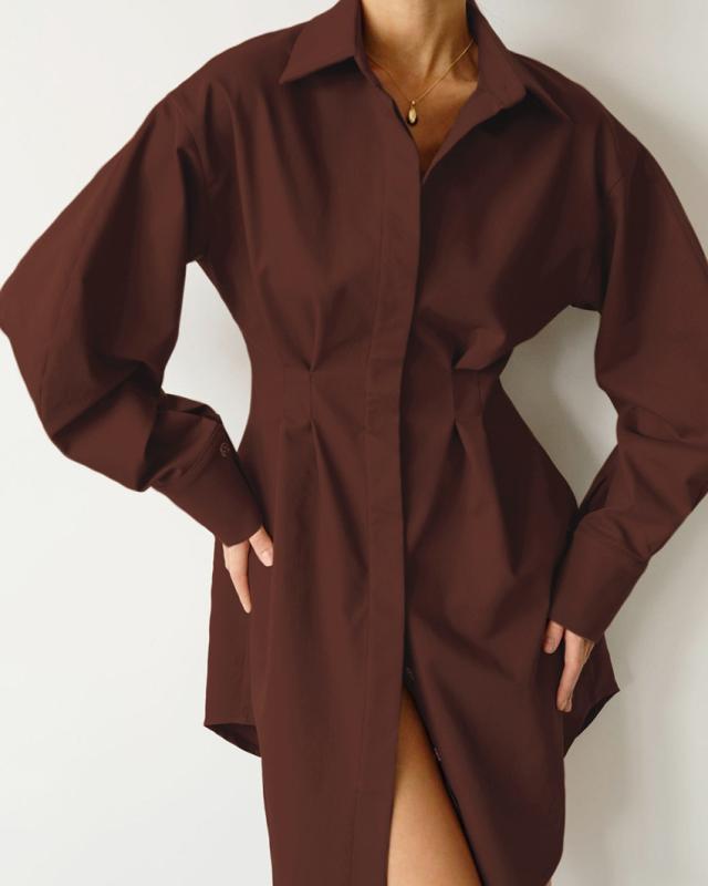 トップス レディース ブラウス シャツワンピース ロング丈 シャツ 長袖 大人 通勤 シンプル おしゃれ 重ね着 春 秋 冬